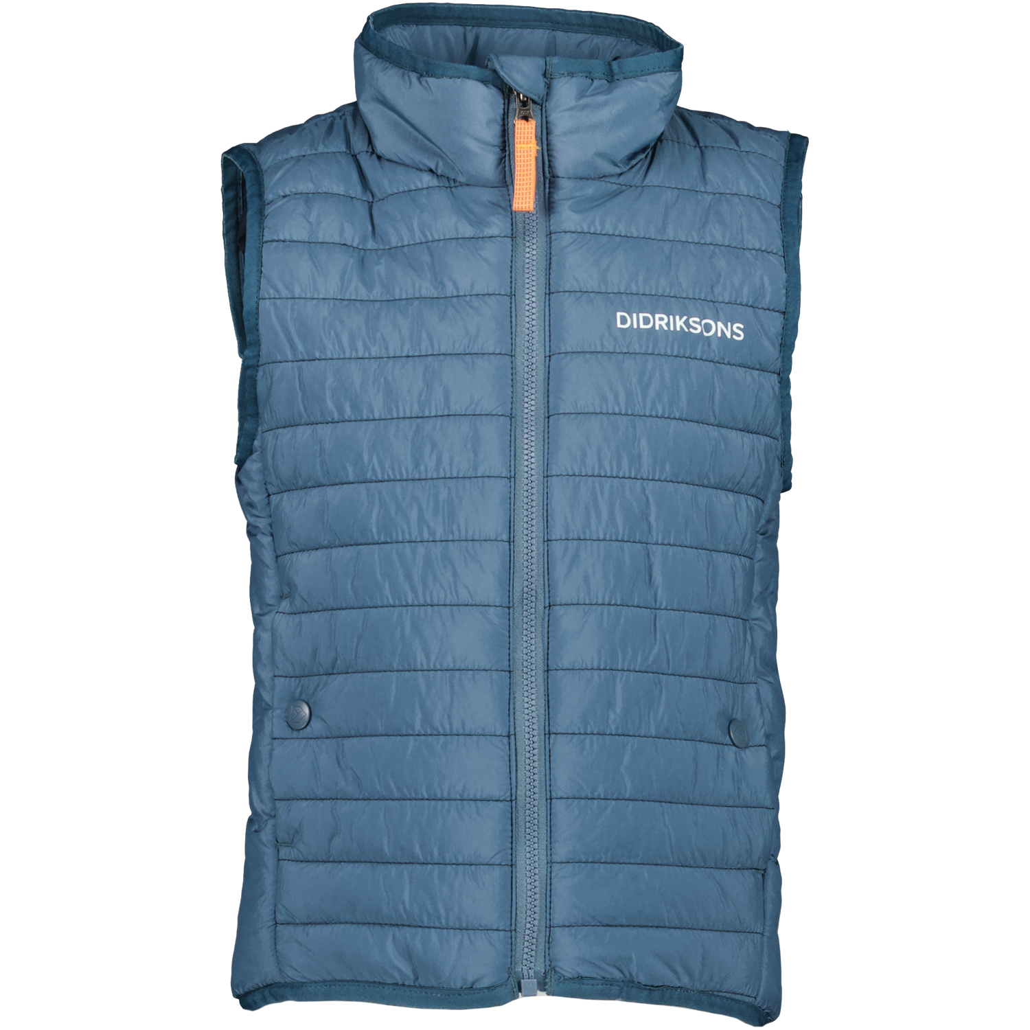 Didriksons Pion er en let og behagelig vest, perfekt til ekstra lag under en jakke eller som selvstændigt lag. Vesten er både vind- og vandafvisende, hvilket giver ekstra beskyttelse mod vejret. Den har to praktiske lommer til opbevaring af småting og en let nedadvendt ryg, der giver en god pasform. Elastiske kantbånd ved bundkanten og ærmegabene sikrer en behagelig og tæt pasform, som holder kulden ude.