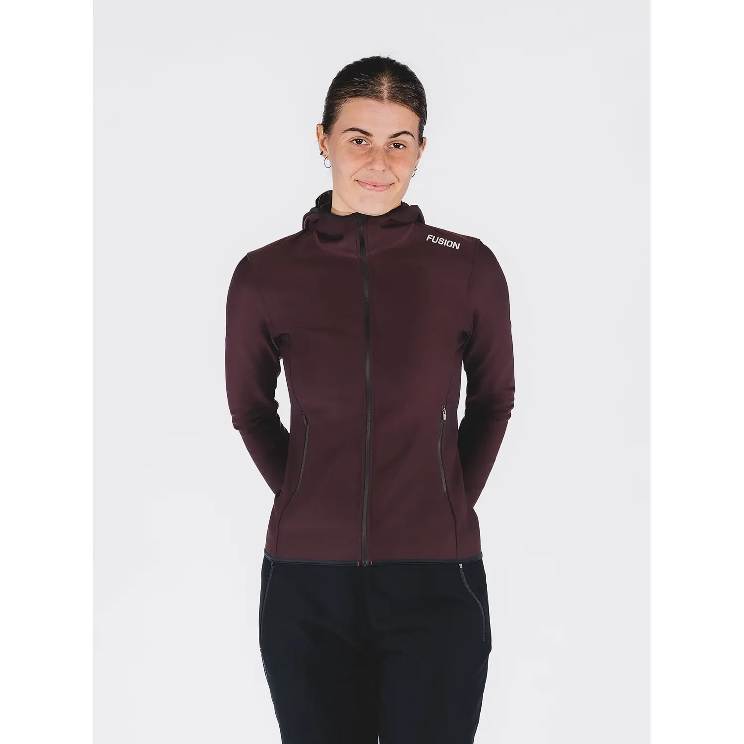 Fusion Women's Recharge Hoodie - den ultimative kombination af stil og funktionalitet. Med sin regular fit pasform tilbyder denne hættetrøje en løstsiddende, men stadig faconsyet, udgave med lynlås, perfekt til rejser, forberedelse og restitution efter løb samt let træning.