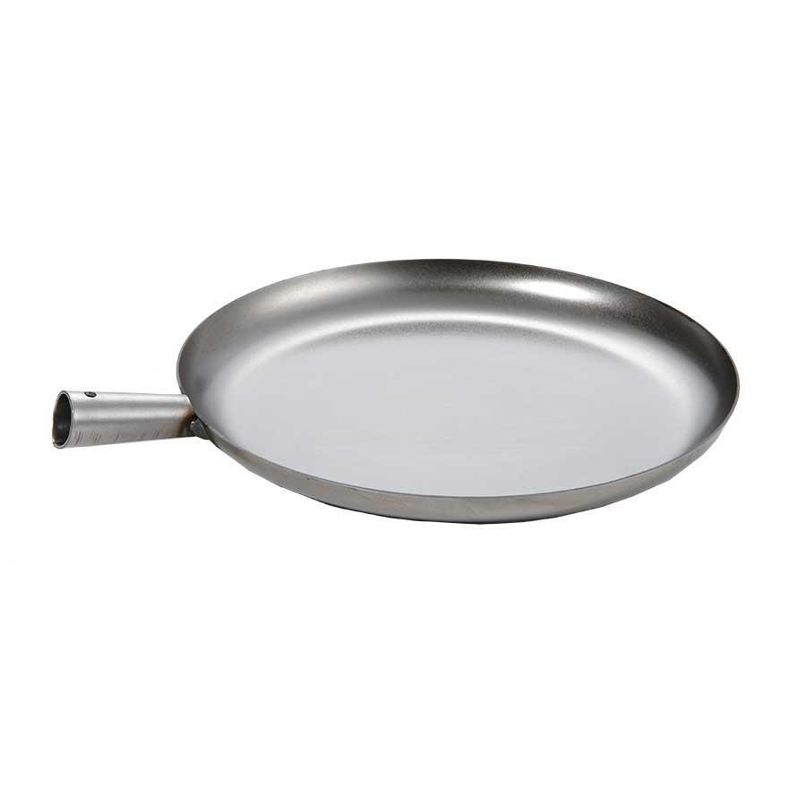 Muurikka stegepande på 23 cm. i diamter og med en ganske kort studs til at lave et håndtag til.Og det med at lave et håndtag kan du jo gøre når du er nået frem til destination af en pind fra skoven.Således kan du opnå en endnu lavere pakkevægt i rygsækken.Panden vejer 500 gram og er 3 cm. høj.