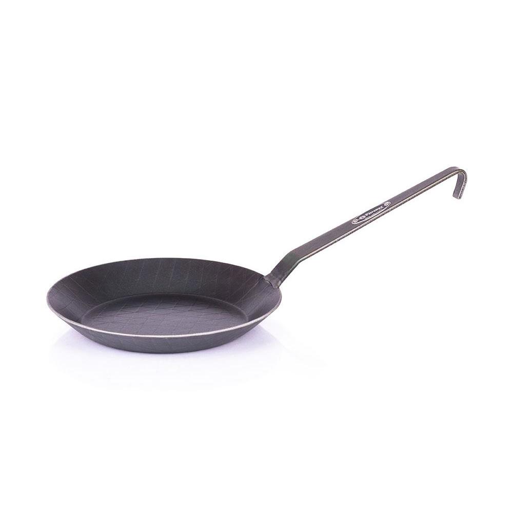 Petromax pande i smedejern med langt håndtag til brug på alle former for energikilder.