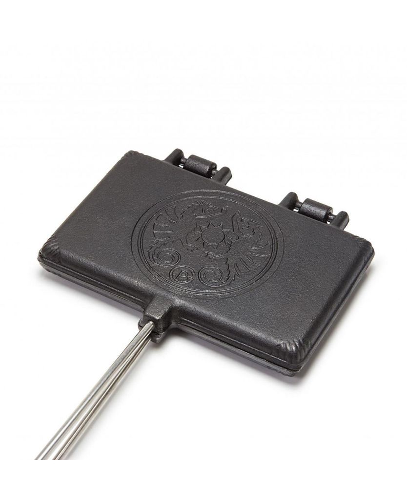 Jernet er med en praktisk krog som holder vaffelsiderne sammen når den skal vendes rundt inde i bålet.