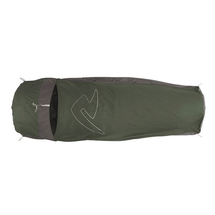 Bivy i fin kvalitet med vandtæt bund, myggenet og plads til både underlag og soveposen nede i bivy´en.