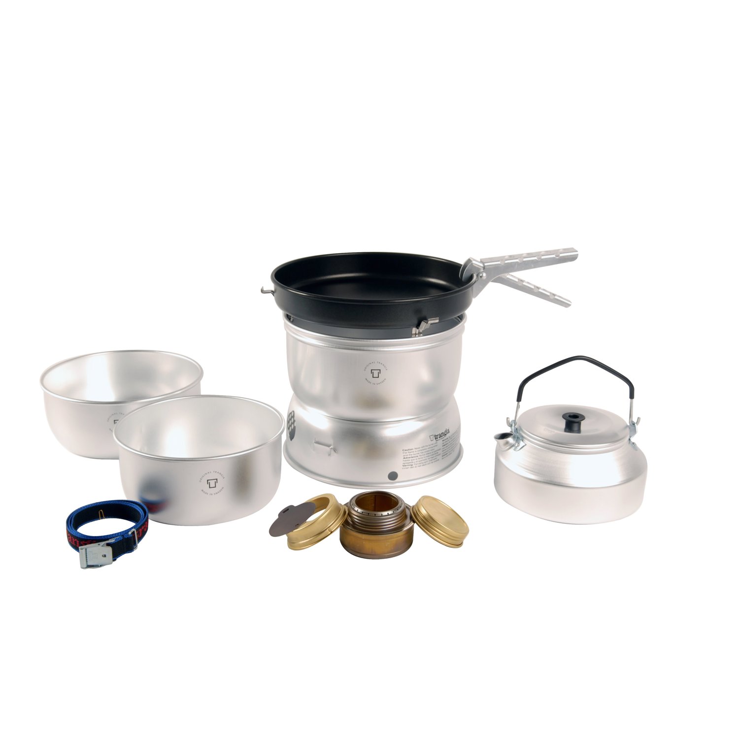 Ingen ved siden af og ingen over Trangia når det gælder stabile stormkøkkener til snart sagt ethvert formål. Her et ultralet sæt med kedel og pande med teflonbelægning.